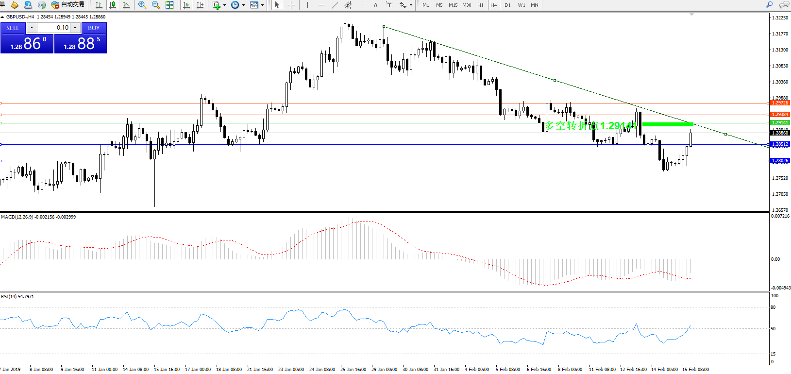 交易策略:1.29141下方看跌,目标1.28512、1.28026
