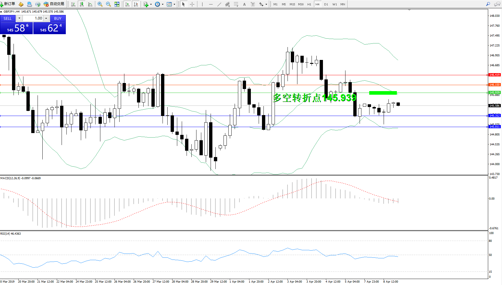 交易策略:145.939下方看跌,目标145.312145.011
