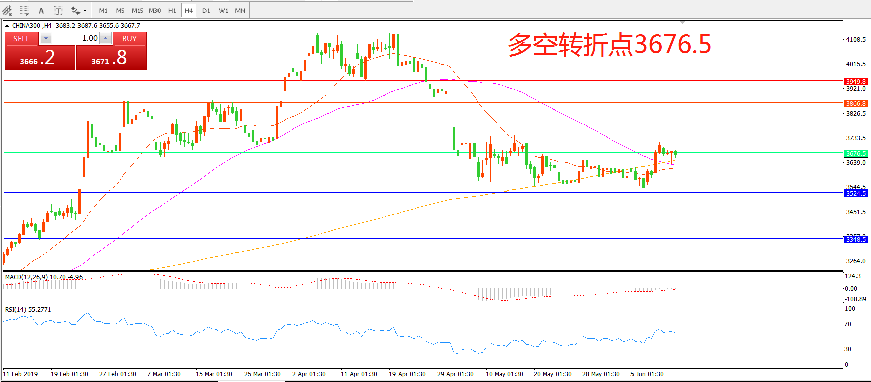 沪深300指数CHINA300 4小时图