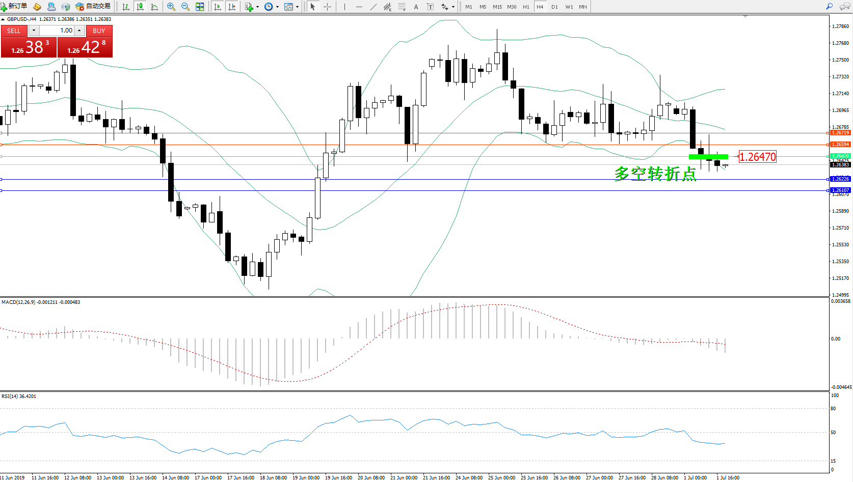 交易策略:1.26470下方看跌,目标1.262261.26107