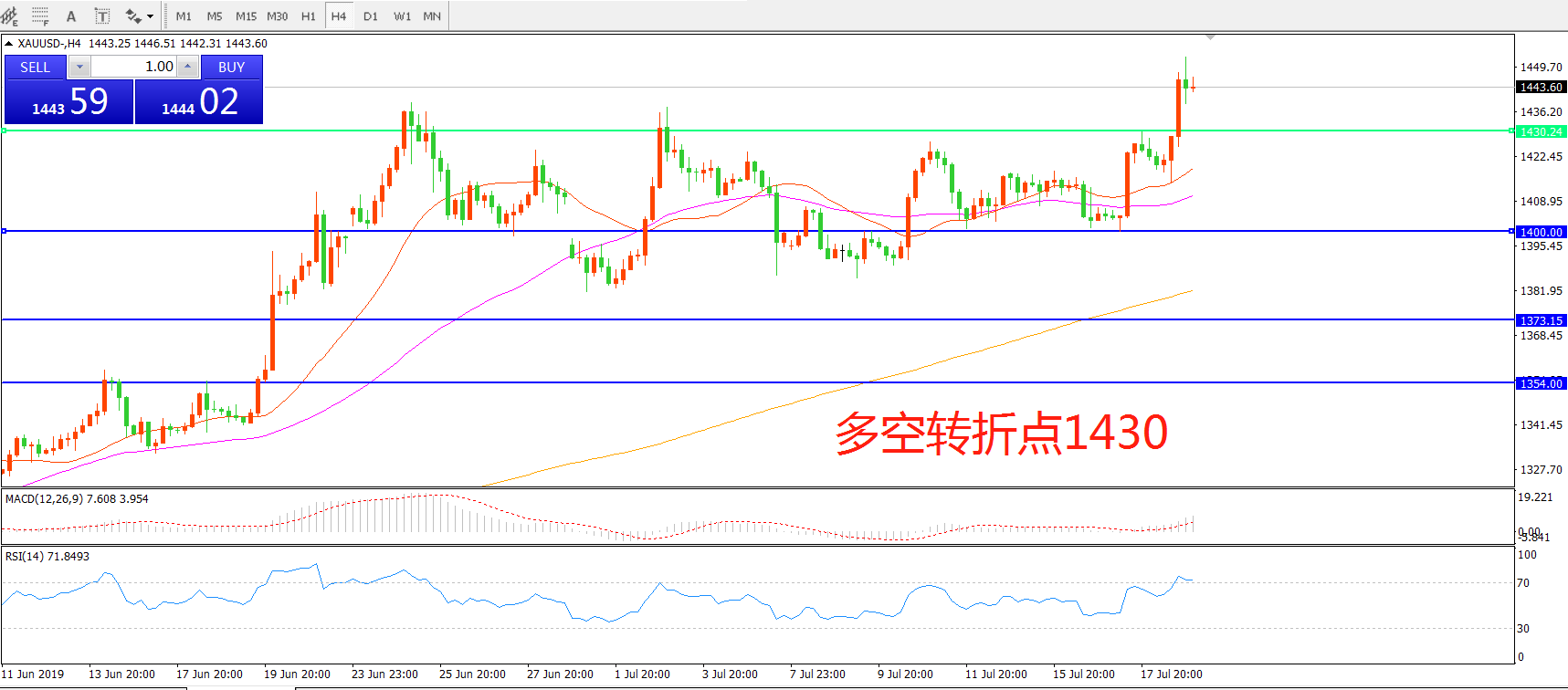 多空转折点:1430.00