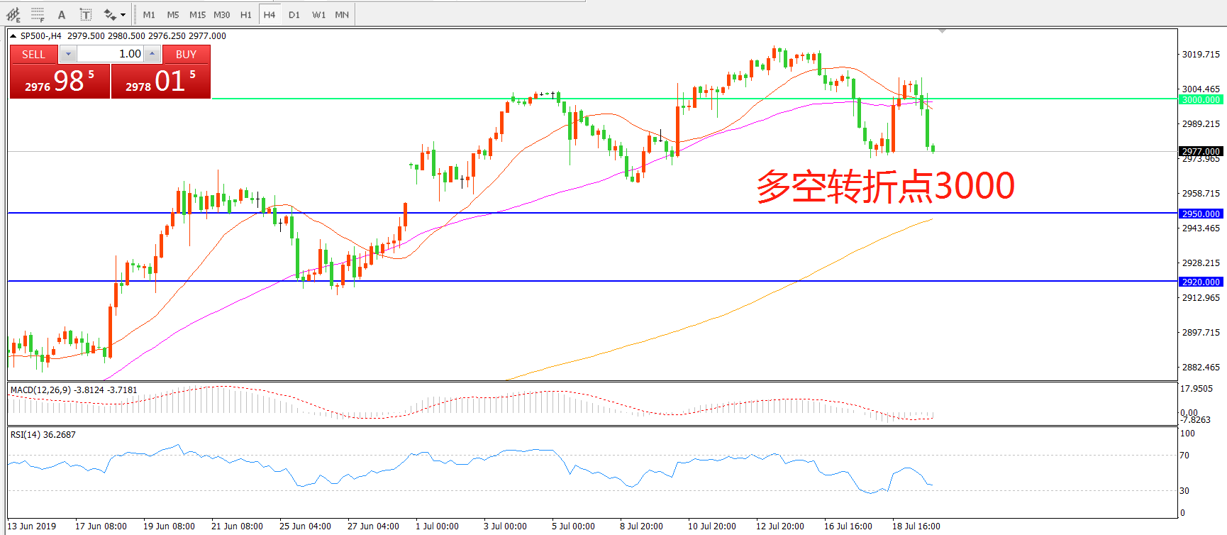 交易策略:在3000.00之下看跌,目标2950.00 2920.00