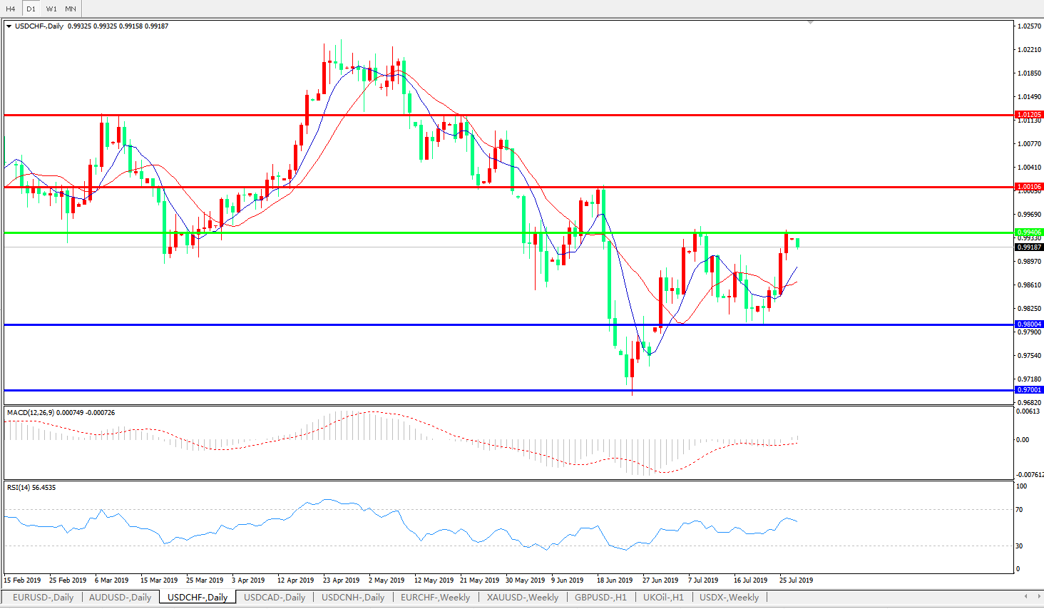 美元兑瑞郎USDCHF   日线图: