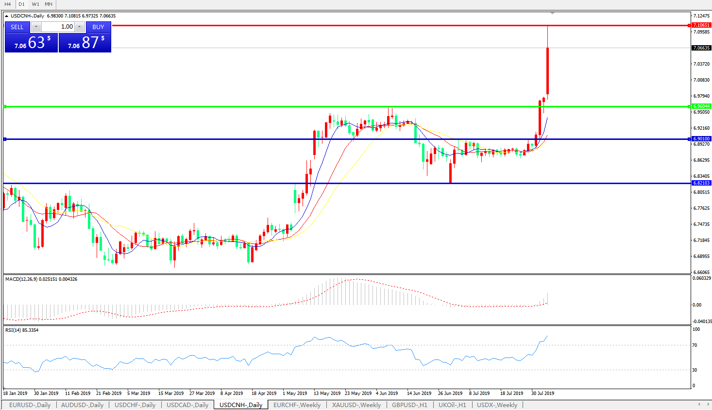 交易策略: 在6.9605之上,看涨,目标价位为6.7100,然后为7.2000。