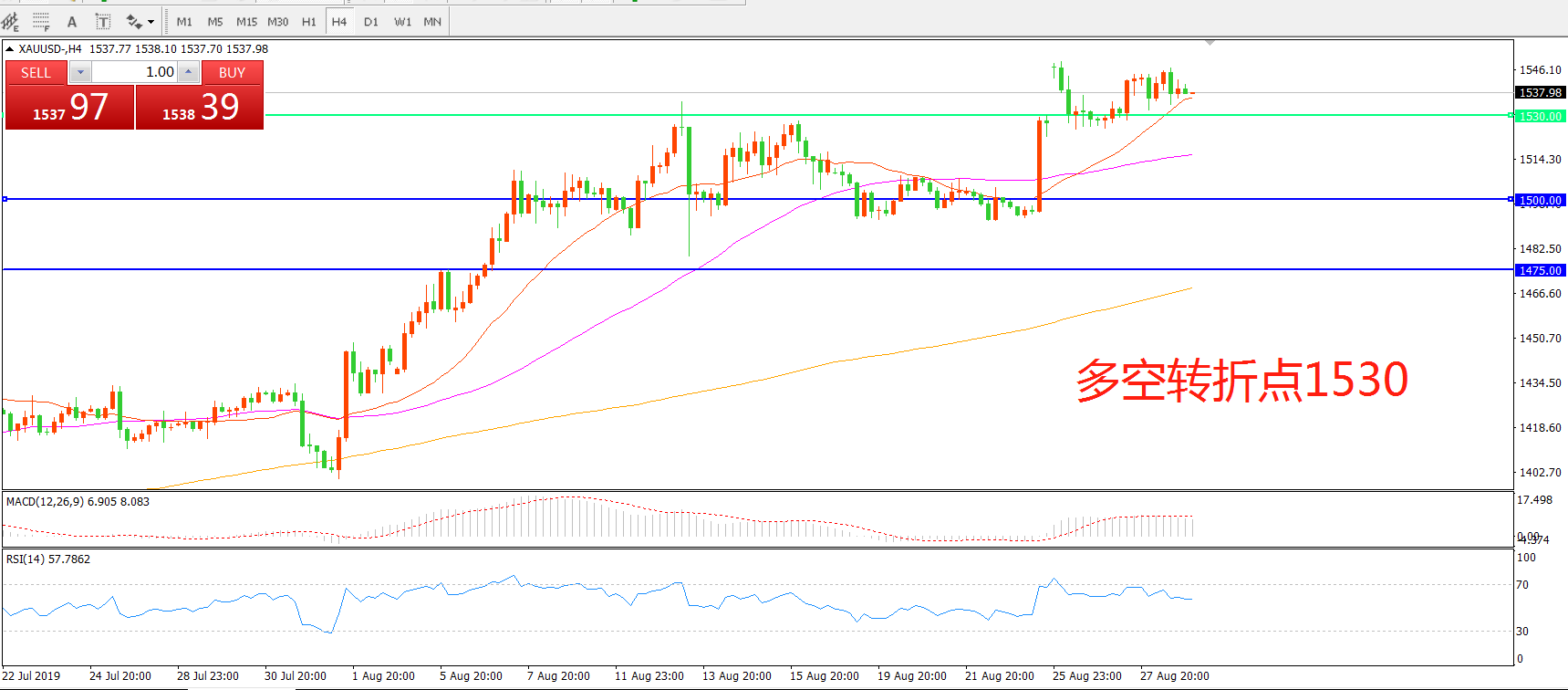 多空转折点:1530.00