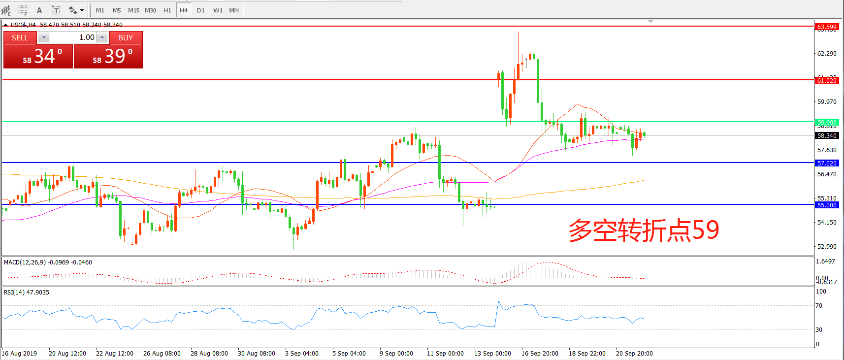 交易策略: 在59.00之下看跌,目标57.00 55.00