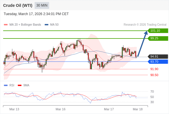 交易策略: 在 93.70 之上,看涨,目标价位为 99.25 ,然后为 101.10 。