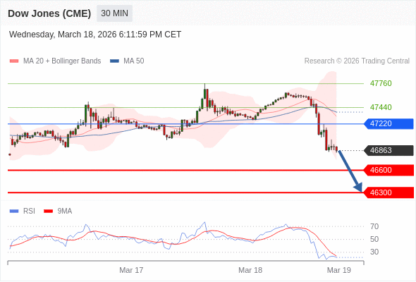 在 47220 之下,看跌,目标价位为 46600 ,然后为 46300 。