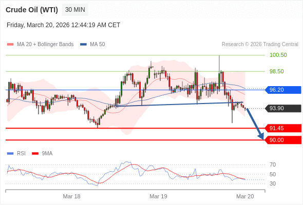 交易策略: 在 96.20 之下,看跌,目标价位为 91.45 ,然后为 90.00 。
