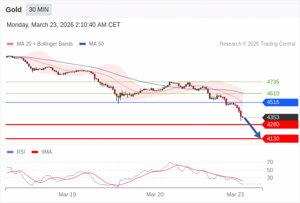 在 4515 之下,看跌,目标价位为 4280 ,然后为 4130 。