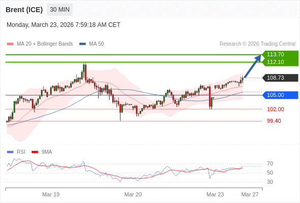 布伦特原油 (ICE) (M6) 当日内: 目标为113.70。