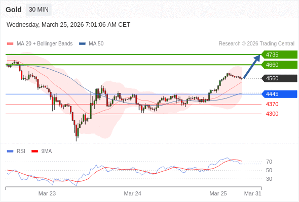 交易策略: 在 4445 之上,看涨,目标价位为 4660 ,然后为 4735 。