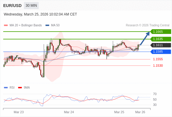 在 1.1585 之上,看涨,目标价位为 1.1635 ,然后为 1.1665 。
