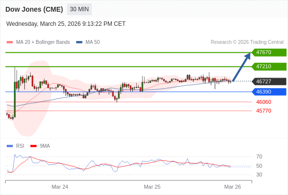 在 46390 之上,看涨,目标价位为 47210 ,然后为 47670 。