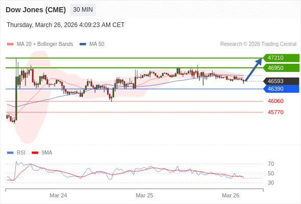 在 46390 之上,看涨,目标价位为 46950 ,然后为 47210 。