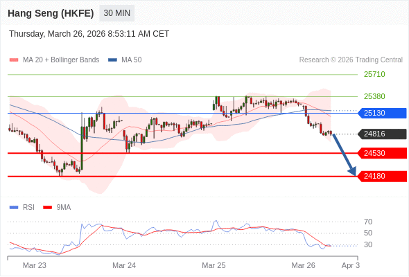 交易策略: 在 25130 之下,看跌,目标价位为 24530 ,然后为 24180 。