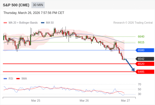 在 6580 之下,看跌,目标价位为 6520 ,然后为 6485 。