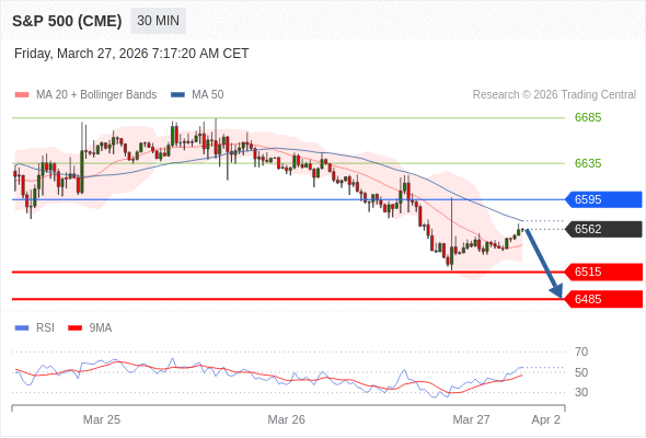 在 6595 之下,看跌,目标价位为 6515 ,然后为 6485 。
