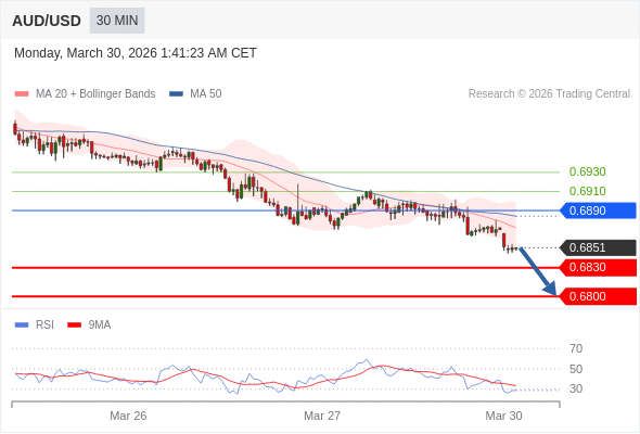 在 0.6890 之下,看跌,目标价位为 0.6830 ,然后为 0.6800 。