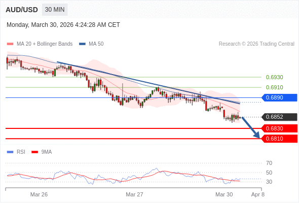 在 0.6890 之下,看跌,目标价位为 0.6830 ,然后为 0.6810 。