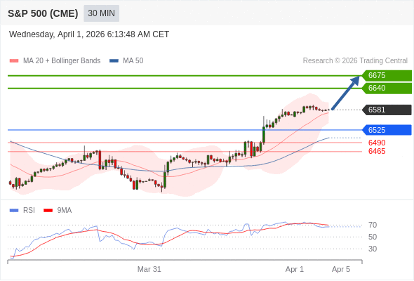 在 6525 之上,看涨,目标价位为 6640 ,然后为 6675 。