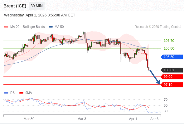 交易策略: 在 103.80 之下,看跌,目标价位为 99.00 ,然后为 97.10 。