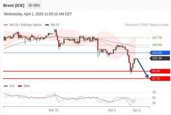 交易策略: 在 103.80 之下,看跌,目标价位为 99.00 ,然后为 97.10 。