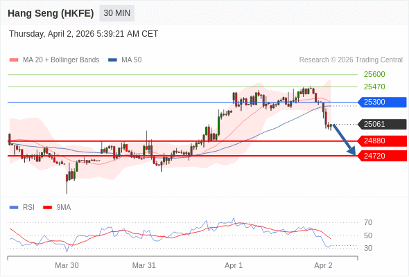 在 25300 之下,看跌,目标价位为 24880 ,然后为 24720 。