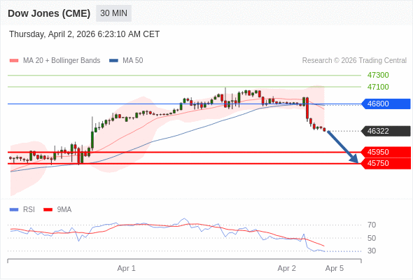 在 46800 之下,看跌,目标价位为 45950 ,然后为 45750 。