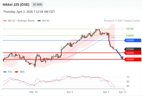 在 53500 之下,看跌,目标价位为 52200 ,然后为 51500 。