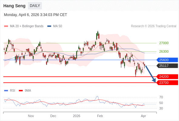 恒生指数 短线: 短期关键阻力位在25600。