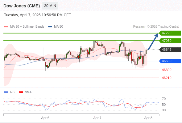 在 46590 之上,看涨,目标价位为 47050 ,然后为 47220 。