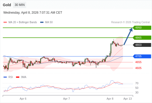 在 4705 之上,看涨,目标价位为 4865 ,然后为 4950 。