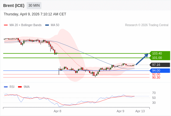 在 94.00 之上,看涨,目标价位为 101.00 ,然后为 103.40 。