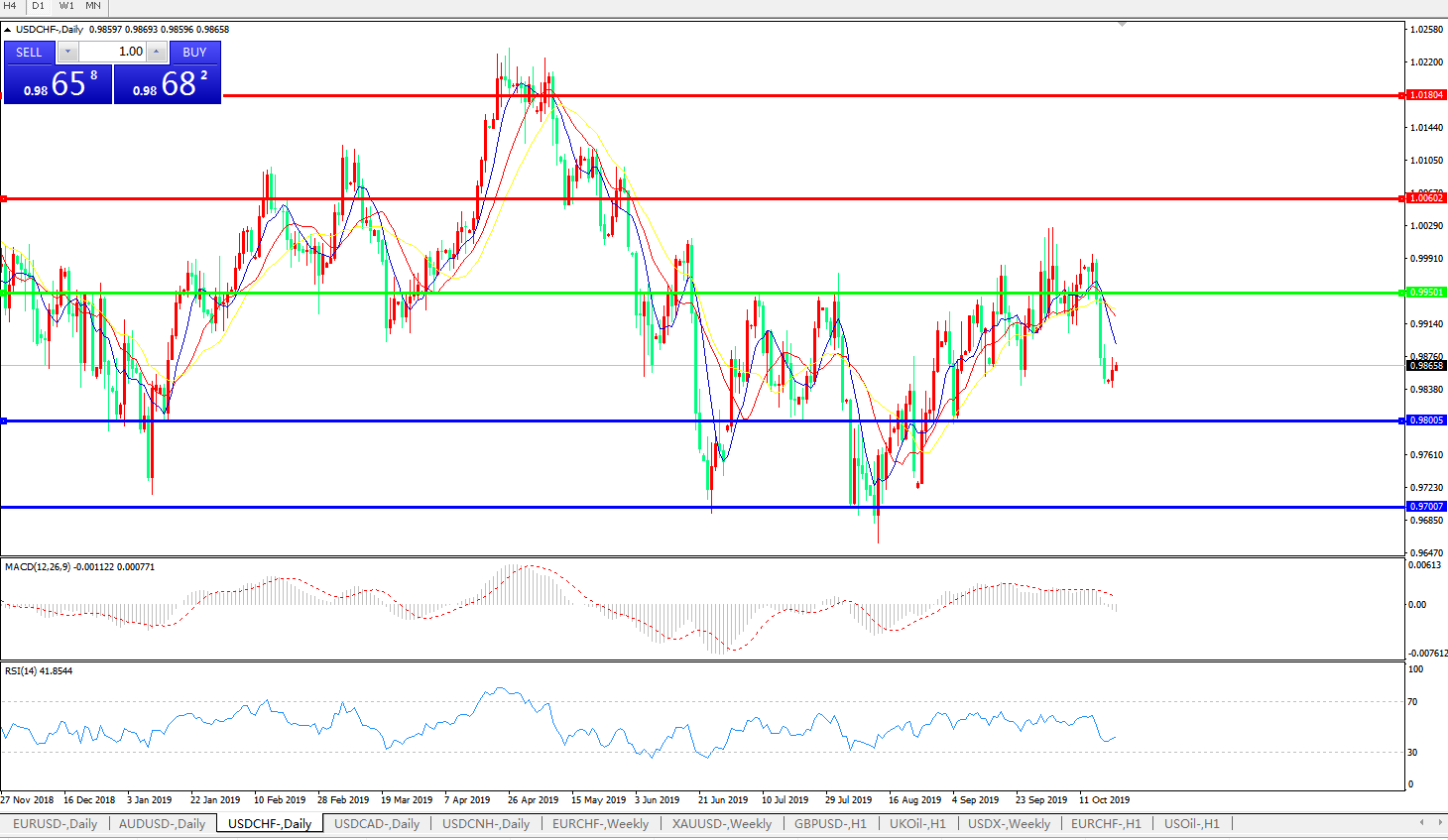 交易策略:0.9950下方看跌,目标0.98000.9700