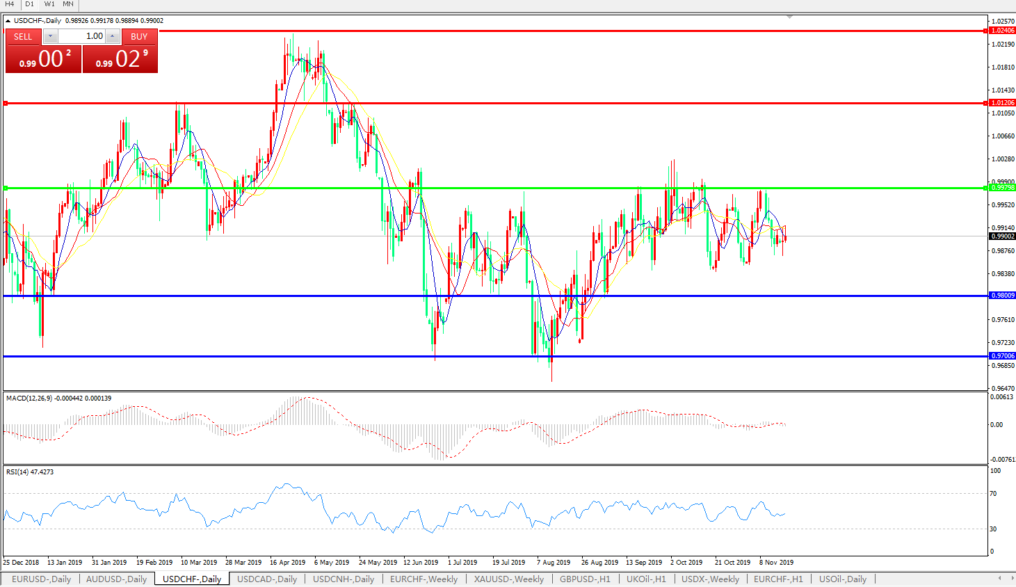 美元兑瑞郎USDCHF 日线图:
