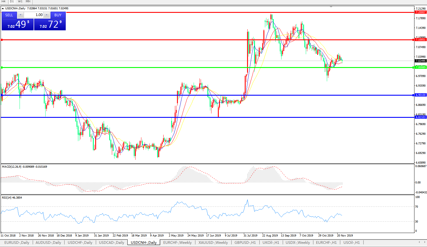 交易策略: 在7.0000之上,看涨,目标价位为7.1000,然后为7.2000。