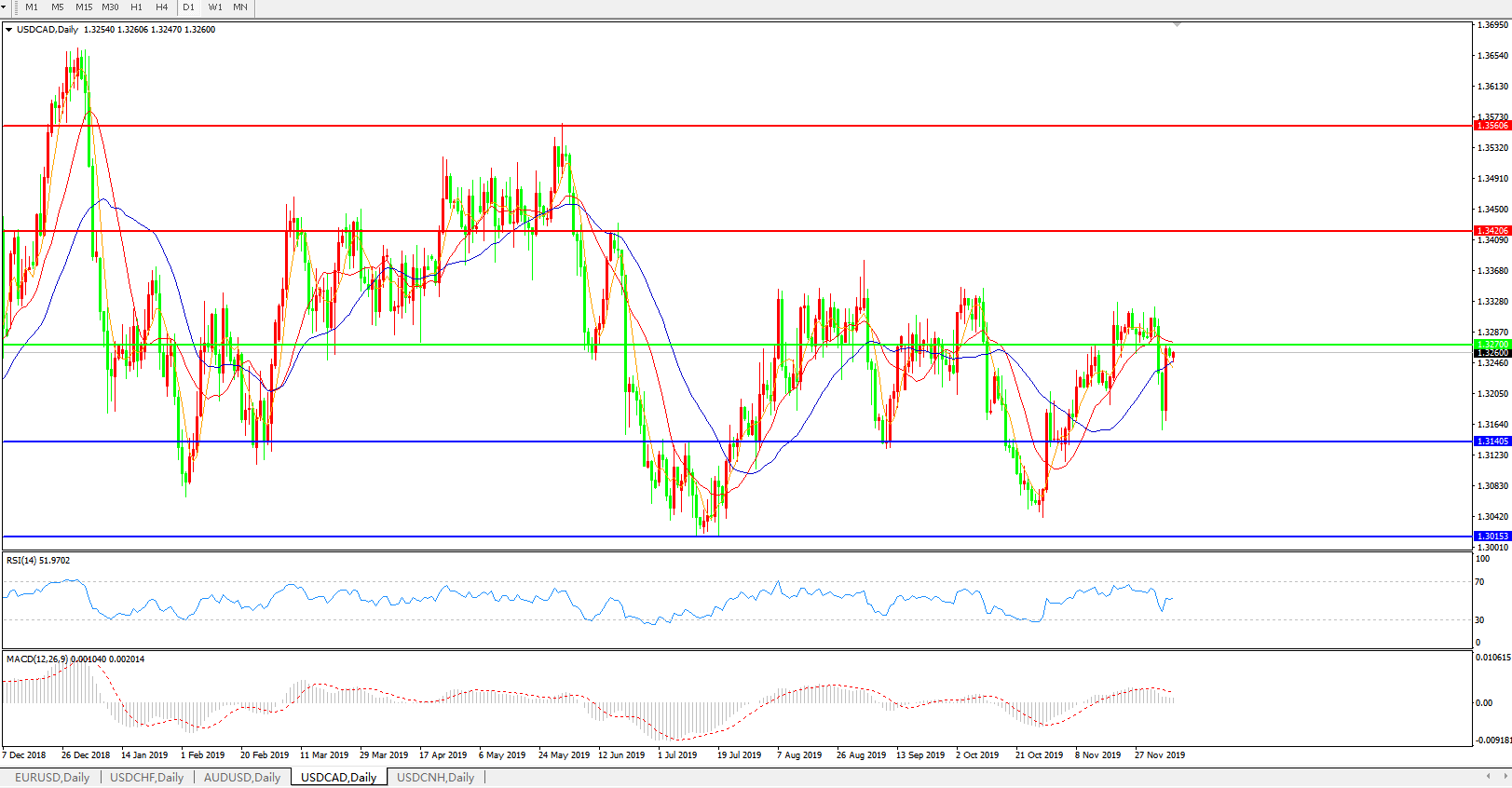 美元兑加元USDCAD    日线图: