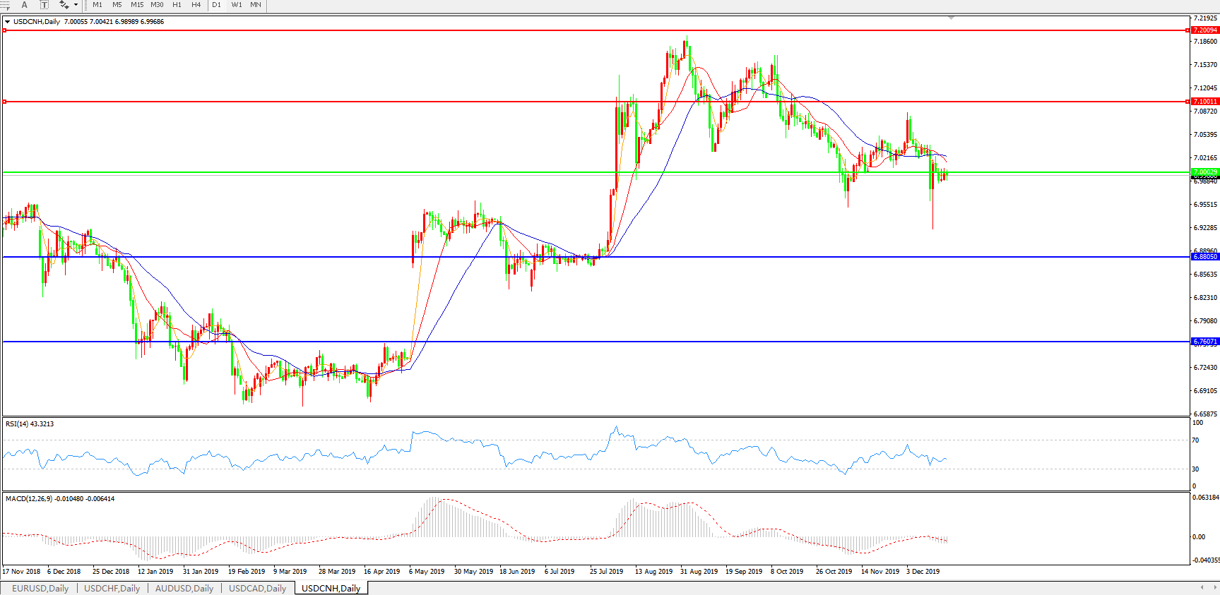 美元兑人民币USDCNH    日线图: