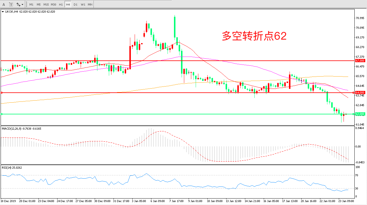 交易策略:在62.00之下看跌,目标60.00 57.00