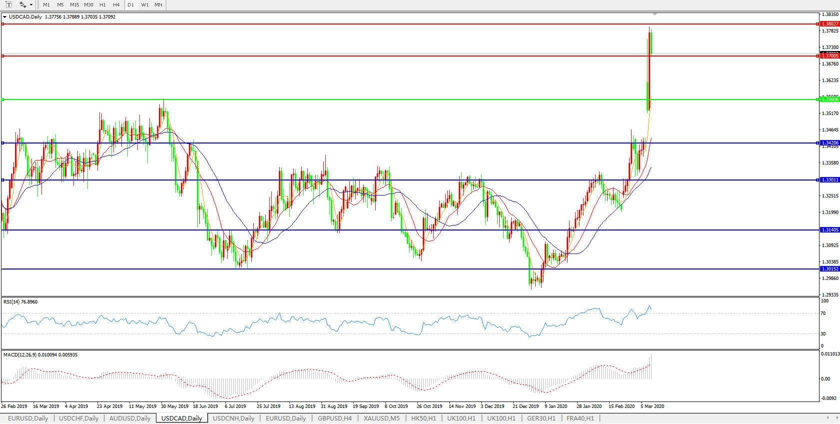 美元兑加元USDCAD    日线图: