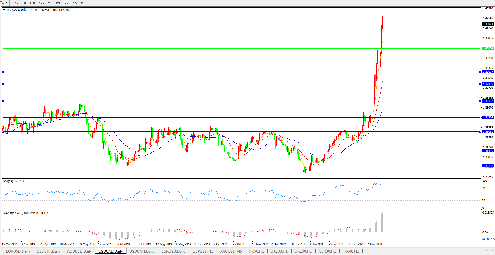 疫情蔓延油价进入熊市,美加飙升站上1.42关口