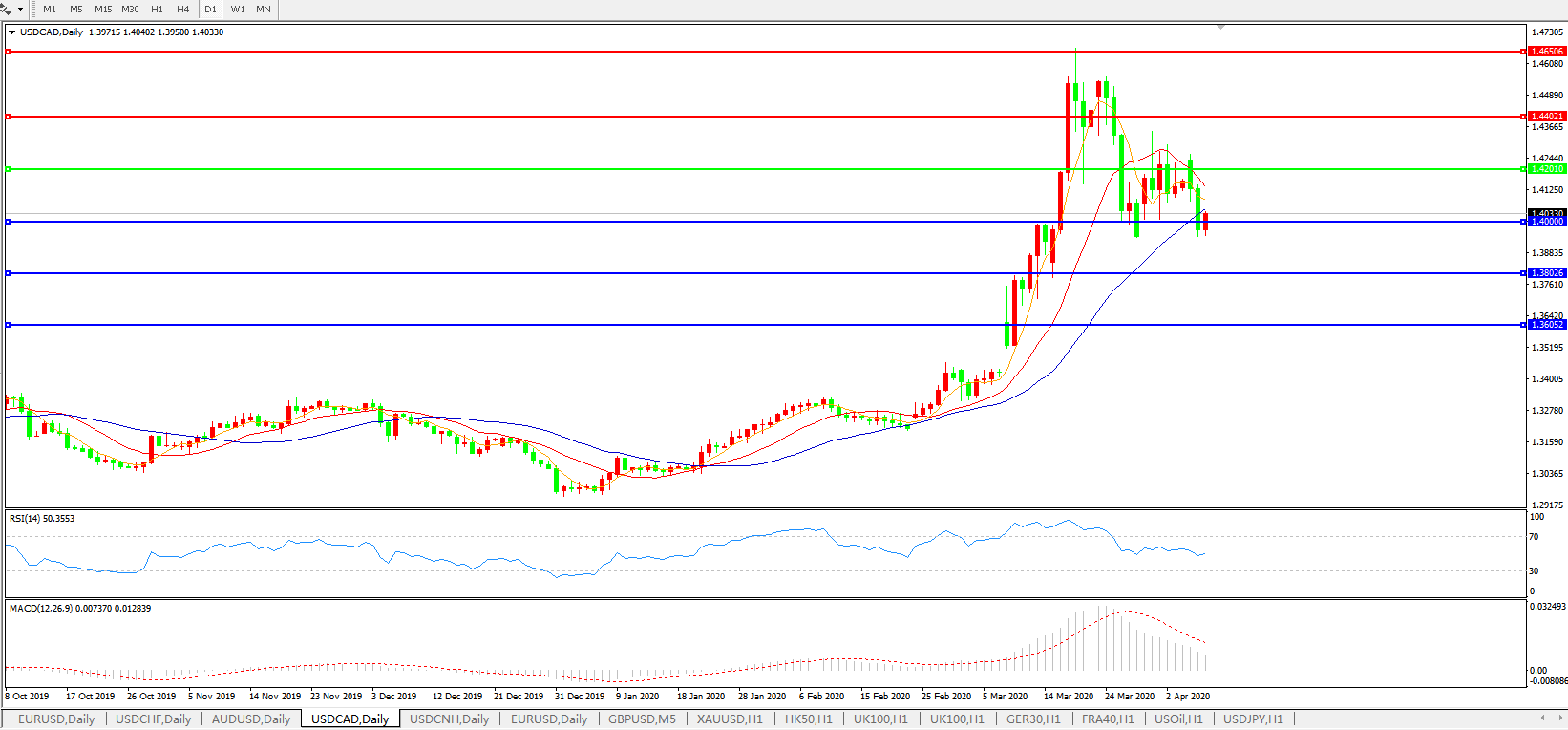 交易策略: 在1.4200之下,看跌,目标价位为1.4000、1.3800