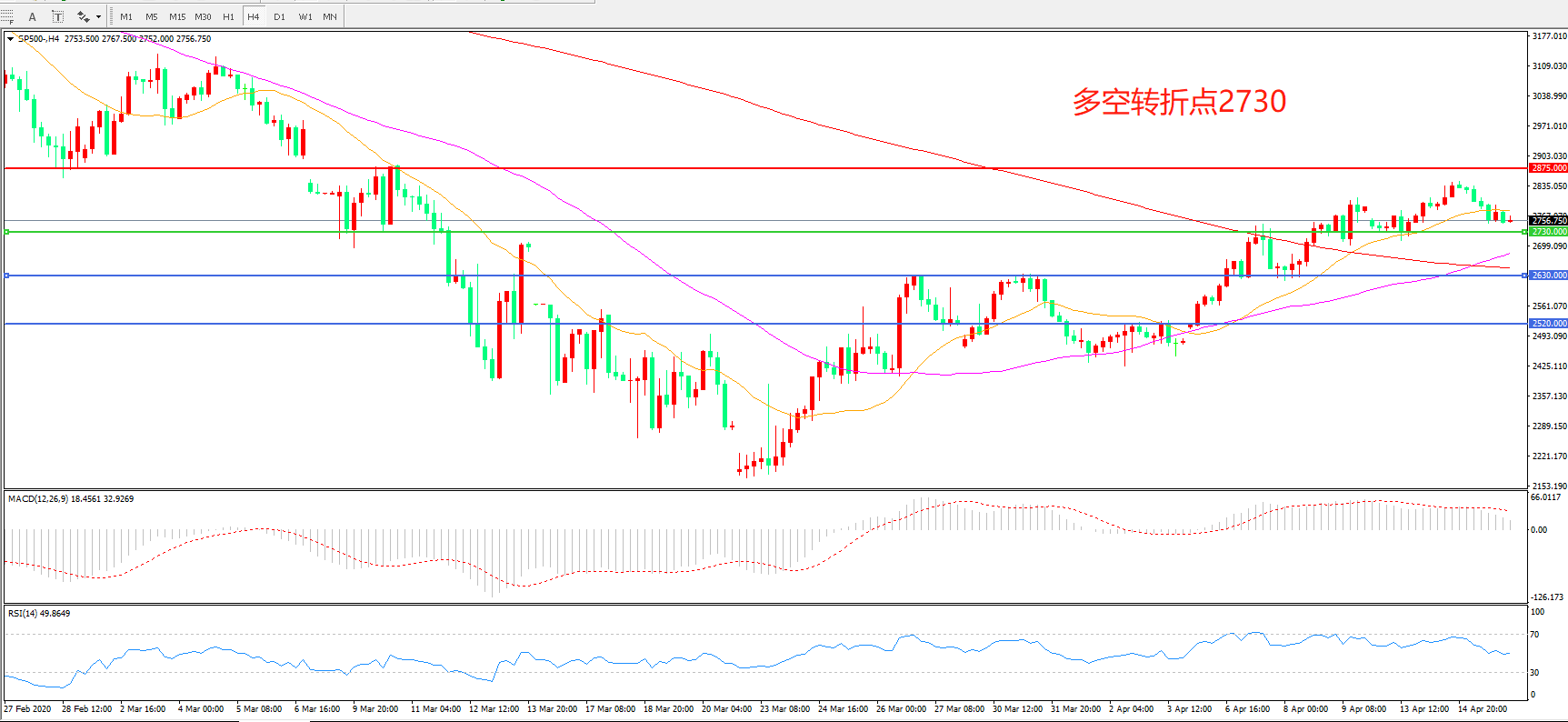 多空转折点:2730.00