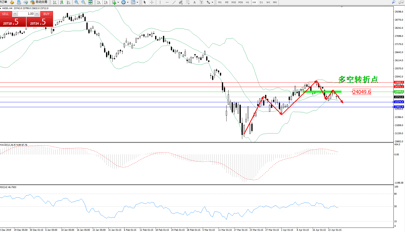 恒指HK50 ——4小时K线图显示: