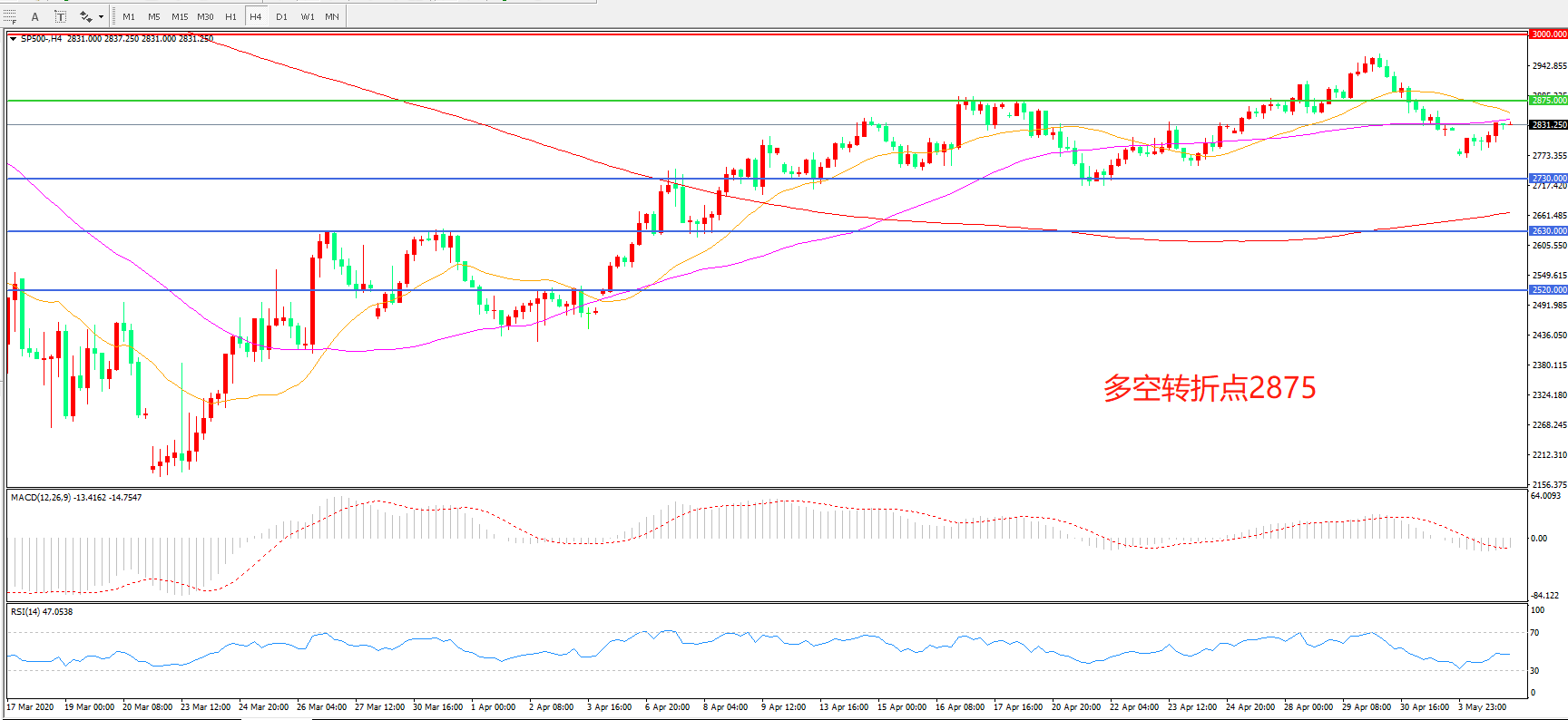 标普500 SP500   4小时图