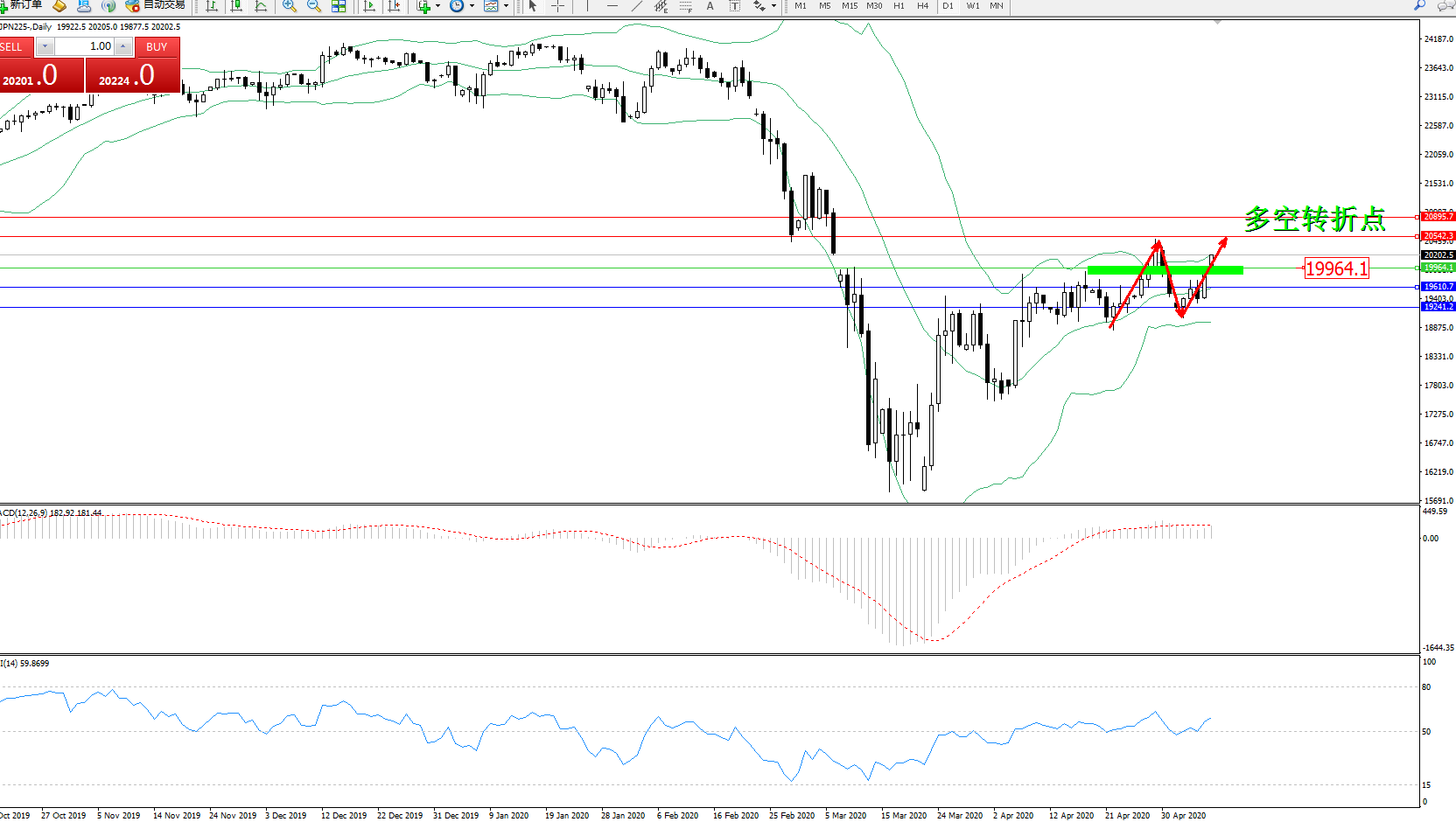 交易策略:19964上方看涨,目标20542、20895