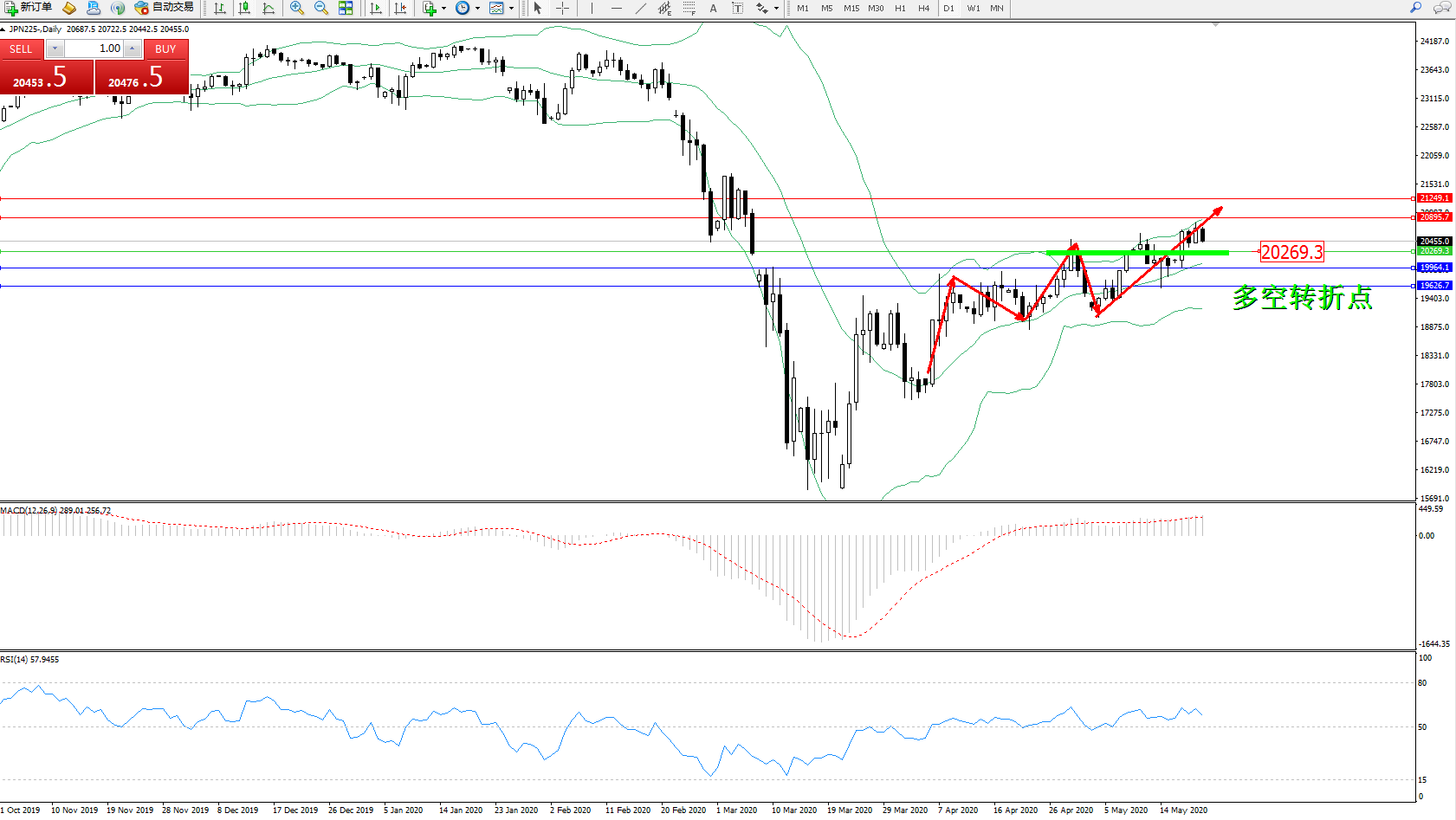 交易策略:20269上方看涨,目标20895、21249