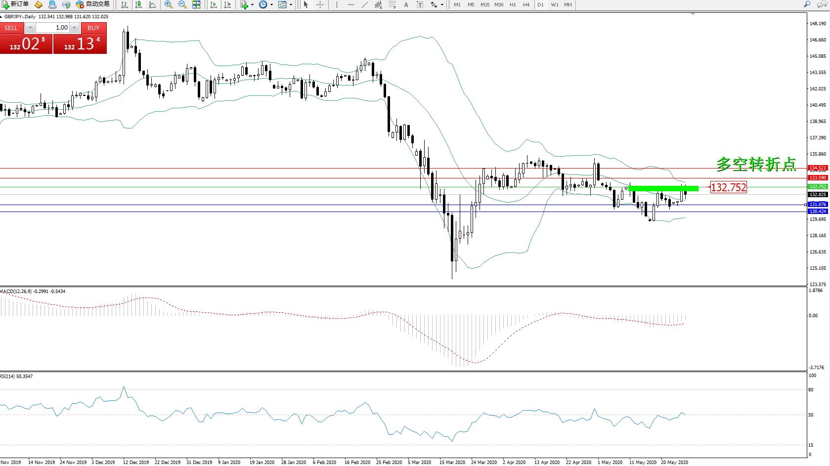备选策略:132.752上方看涨,目标133.590、134.521