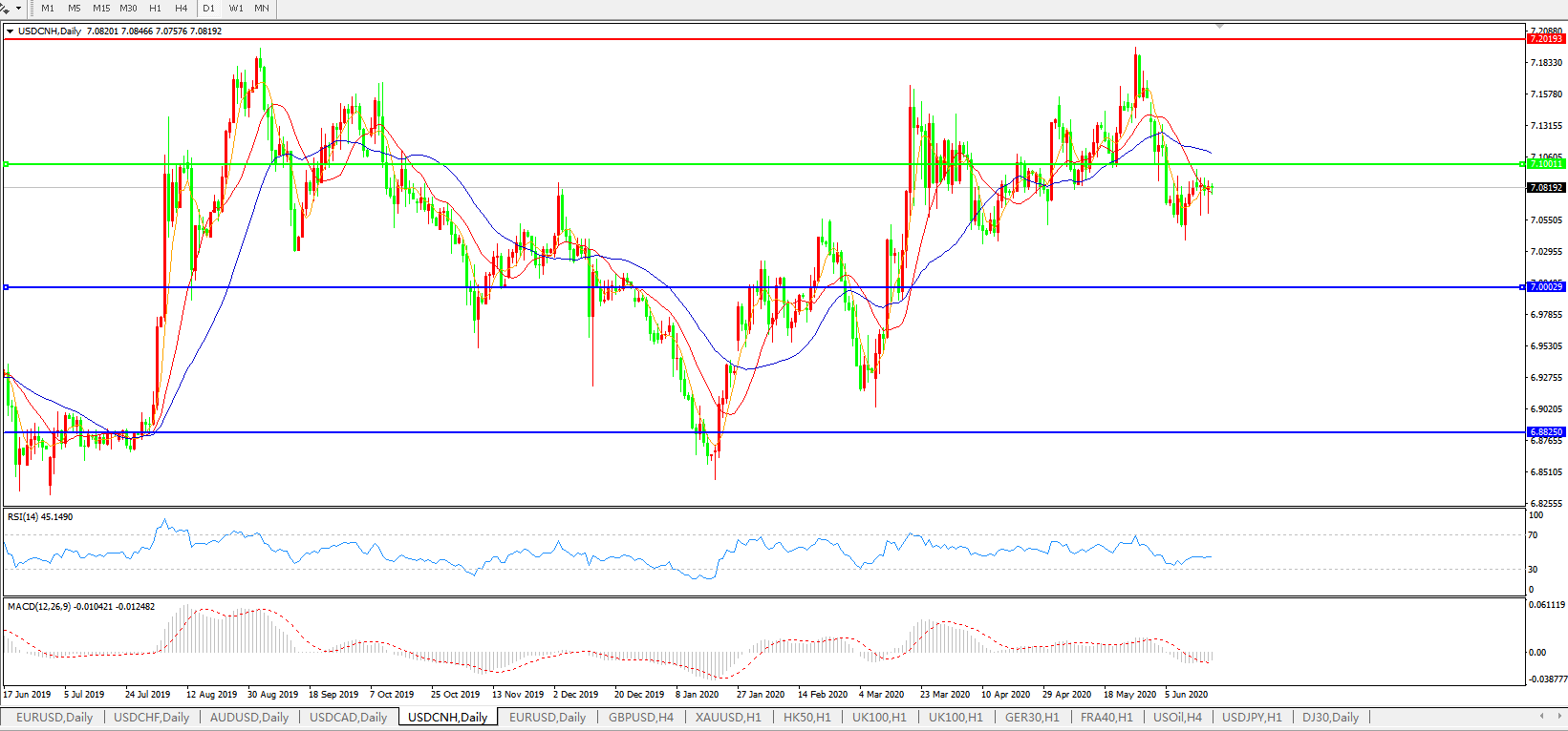 美元兑人民币USDCNH    日线图: